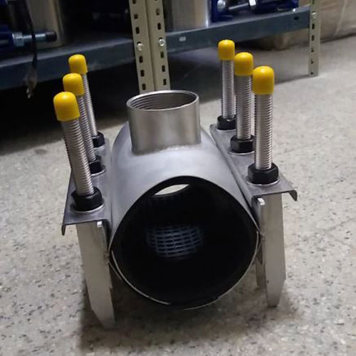 Son aptas para caños de acero al carbono, fundición y polietileno, construidas totalmente en acero inoxidable AISI 304L , o bien en sus versiones de mordazas en fundición nodular, utilizables hasta una presión de 6 bares. Poseen junta sellante de circunvalación total o parcial. Disponibles en una o dos secciones de fácil montaje, eliminando la necesidad de herramental especial. Tamaños disponibles para cañerías desde diámetro nominal ¾” y en anchos de reparación hasta 900 mm.