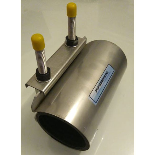 Son aptas para caños de acero al carbono, fundición y polietileno, construidas totalmente en acero inoxidable AISI 304L , o bien en sus versiones de mordazas en fundición nodular, utilizables hasta una presión de 6 bares. Poseen junta sellante de circunvalación total o parcial. Disponibles en una o dos secciones de fácil montaje, eliminando la necesidad de herramental especial. Tamaños disponibles para cañerías desde diámetro nominal ¾” y en anchos de reparación hasta 900 mm.